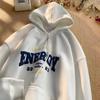 Men Oversized Hoodie Loose American Style Simple Letters Print Couple Hoodies
