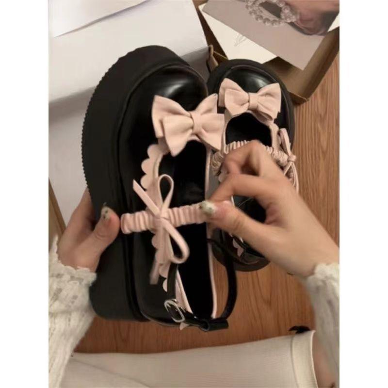 Japanische süße Schleife Mary Janes kleine Lederschuhe modische vielseitige Damen flacher Mund Muffin dicksohlige jk Einzelschuhe