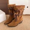 Mode Herbst Winter Dicke Absätze Westernstiefel Damen 2025 Sexy Spitzschuh Halbwadenstiefel Frau Slipper Wildlederimitat Reitstiefel Damen