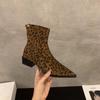 Mode 2025 Designer Leopard Damen Stiefeletten Mode Spitzschuh Kurze Stiefeletten Damen Prägnante Blockabsatz Schuhe