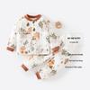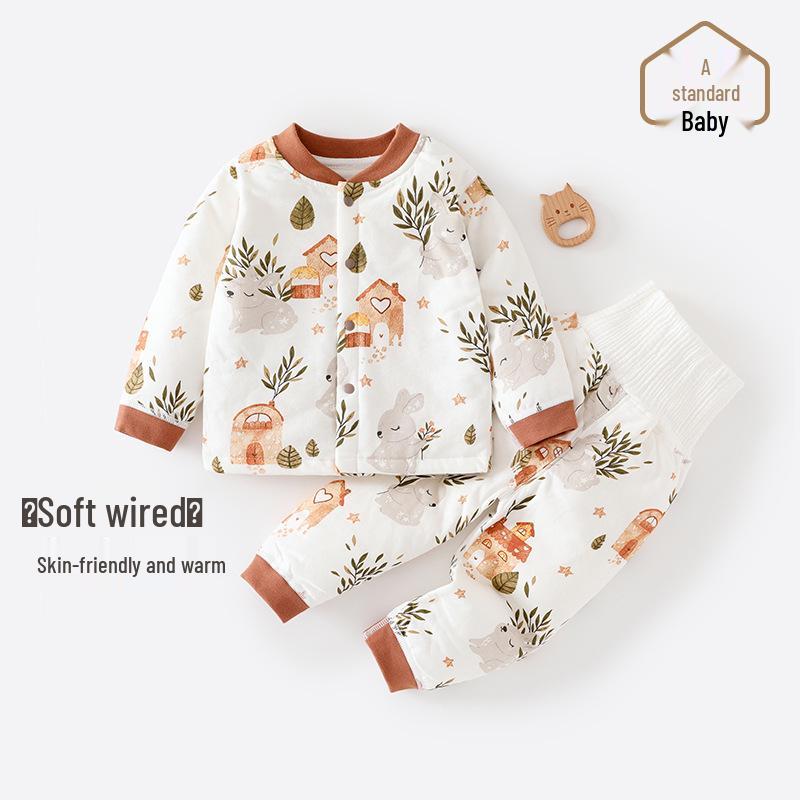 40g Baby Junge Baumwoll-Pyjama-Set mit hohem Bund – Dünne Herbst-/Winter-Warmkleidung & Bauchschützhose