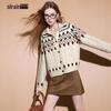 Olrain Women's Red Fair Isle Loose Knit Cardigan Sweater