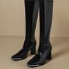 Aber kniehohe Stiefel mit hohen Absätzen Damen 2025 Sommer neue vielseitige Stiefel mit eckiger Spitze und dickem Absatz Lackleder vielseitige Stiefel