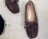 French small square head Mary Jane shoes women's spring and summer suede light mouth bow retro thick heel flat shoes small single shoes