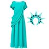 Kinder Mädchen Antike Römische Göttin Freiheitsstatue Kleid Robe Hut Set Kinder Halloween Cosplay Kostüme Kindergarten Aufführung Rollenspiel Outfit