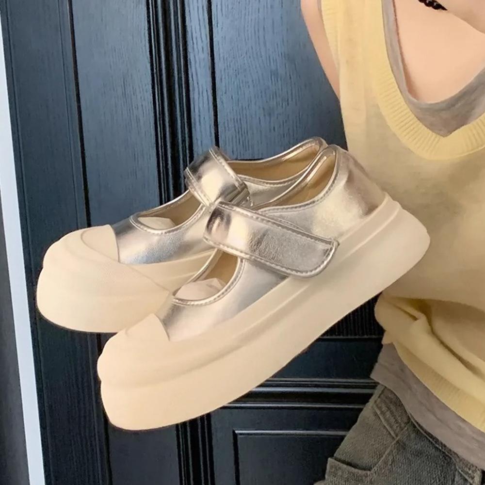 Traubenmama Studiolee Big Head Klettverschluss Muffin Dicke Sohle Erhöhend Runder Kopf Flacher Ausschnitt Mary Janes Kleine Lederschuhe Damen