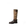 Stiefel mit dicker Sohle Kinder Retro Falten Pile mittelhohe Stiefel Gürtelschnalle aber Knie Dicker Absatz Skinny Ritterstiefel Damen