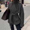 Europäischer und amerikanischer Khaki Kurzmantel mit Bindegürtel für Damen