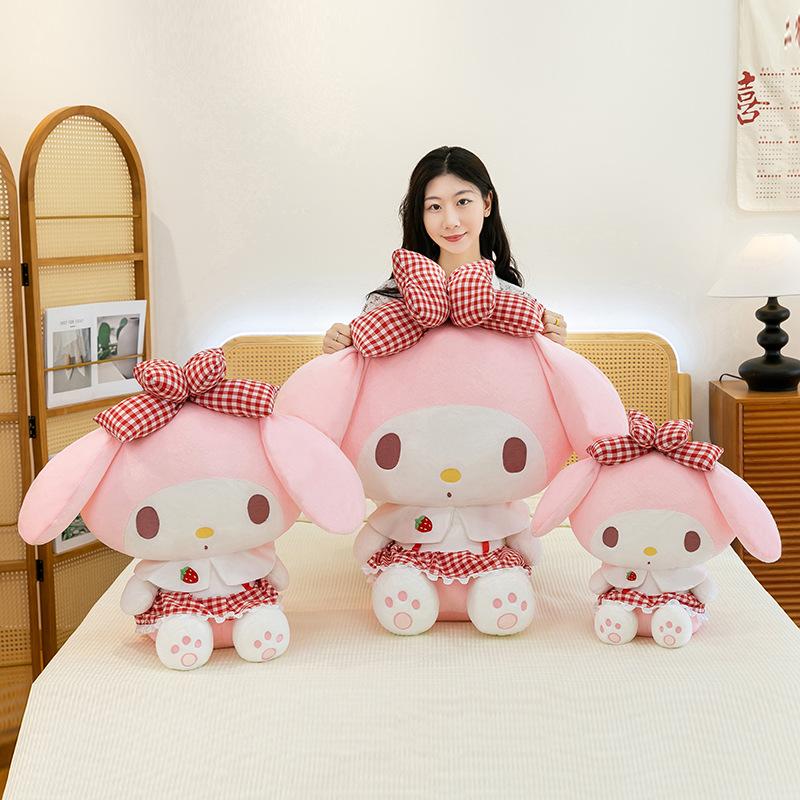 Schleife Melodie Plüschtier Erdbeer Karomuster Rock Melodie Puppe Kissen Geschenk