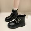 Comemore 2025 New Round Head Chunky Heel Leather Ankle Boots Metal Buckle Punk Knight Botas Female Women Autumn Shoes