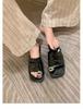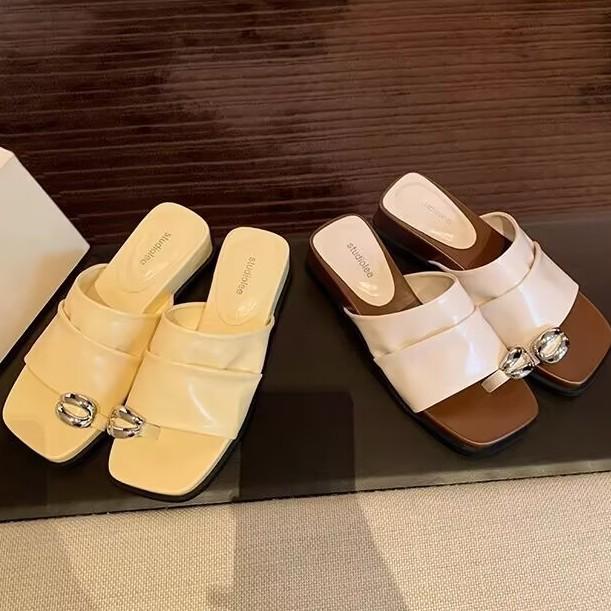 Grape mother has the same style in stock~ Height increase of 4cm~ French metal buckle fold width one-word set, toe slope heel sandals female summer