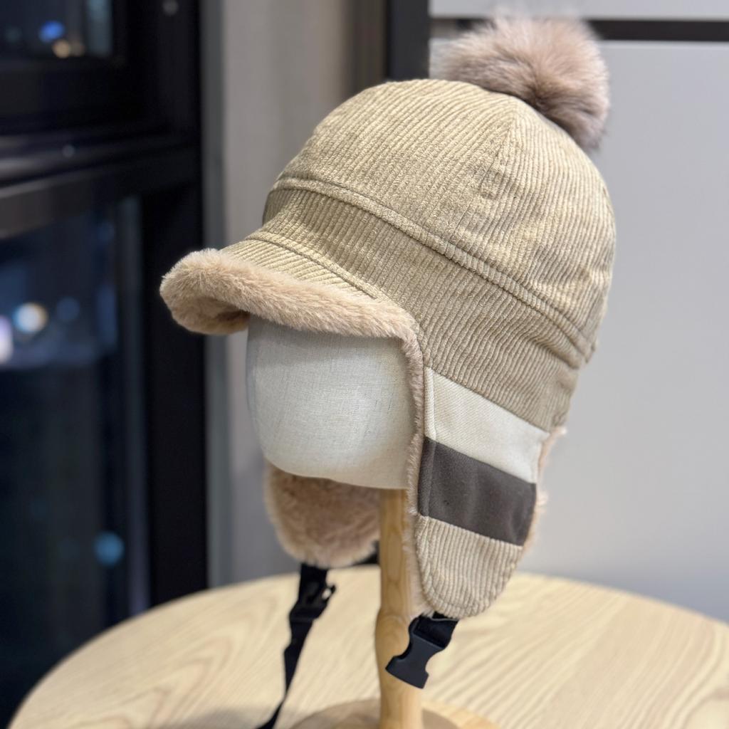 Neuer Winter Plüsch Ohrenschutz Hut für Damen Cord Plus Samt Warmer Donnerhut Kälteschutz Entenzunge Pilotenmütze Trend