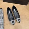Französische spitze Pendler-Einzelschuhe Damen Frühling und Herbst 2025 neu flacher Mund vielseitig Strass quadratische Schnalle Temperament flacher Boden