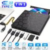 7 in 1 External DVD Drive with USB3.0&Type C DVD Burner Optical Disk Drive Recorder CD/DVD Player CD Writer for Laptop Desktop