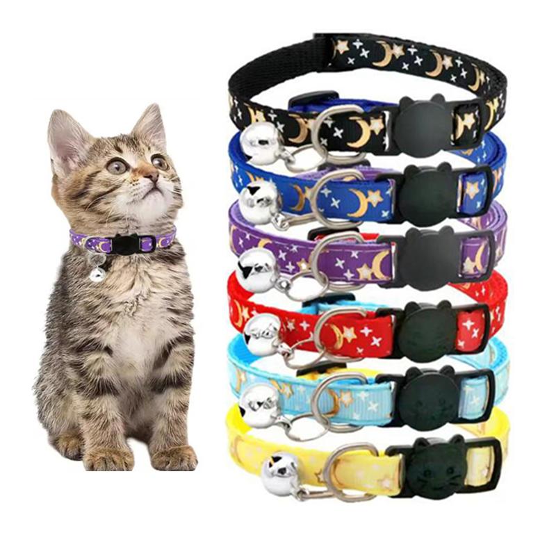 New Gold Stars and Moon Cat Collar with Reflective Safety Buckle and Bell Adjustable Cats And Small Dogs Collars