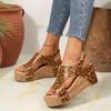Große Größe dicke Sohle erhöhend Fischmaul Leopardenmuster Strand Zehensandalen Sommer neue Klettverschluss Damenschuhe