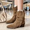 Französische Retro-Kurzstiefel Damen Frühling und Herbst neue Western-Cowboystiefel Damen dicker Absatz spitz mittelhoher Schaft Stiefel zum Stapeln Kurzstiefel