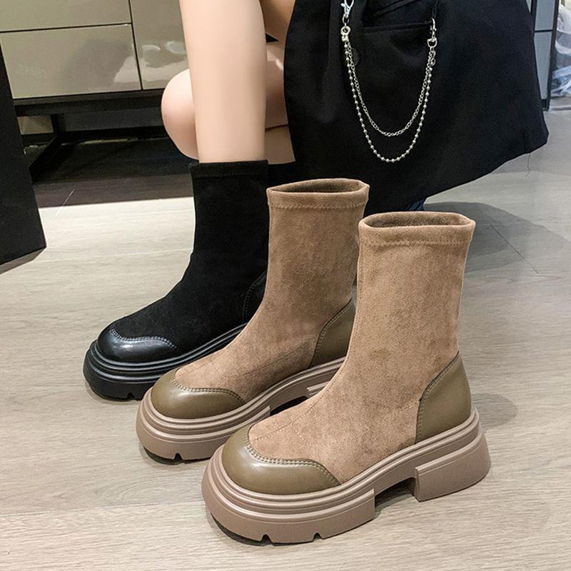 Retro Martin Stiefel Damen Britischer Stil Herbst und Winter neu kleine dicksohlige erhöhte schwarze dicke Ferse dünne kurze Stiefel