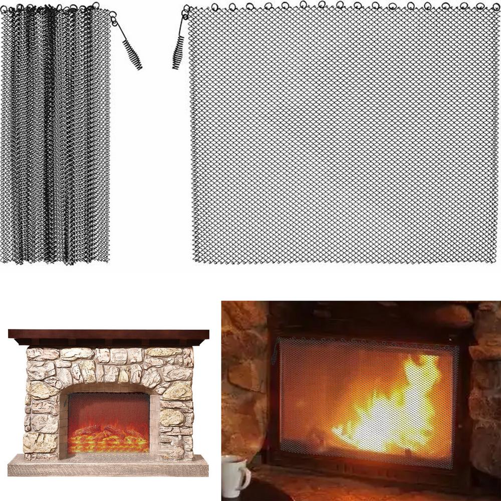 2er-Pack Kamin-Netzvorhang, Schwerlast-Funkenschutzpaneel für Kamin- und Feuerstellen-Schutz