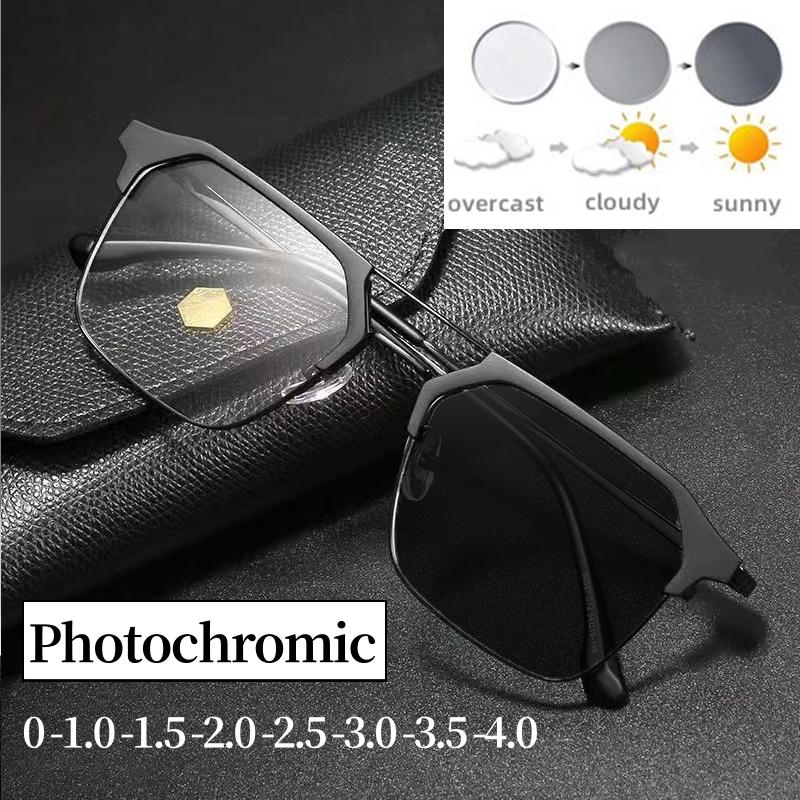 Herren Business Photochrome Myopiebrille Vintage Outdoor Farbwechsel Sonnenbrille Damen Blaulichtfilter Minus Dioptrien Brille