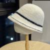 New Autumn and Winter Big Head Hat Women's Bucket Hat Women's Winter Warm and Face Showing Small Basin Hat Solid Color Striped Fisherman Hat