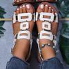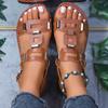 Mode Damen Flache Sandalen Rundköpfig Leder Damen Hausschuhe Flach Lässig Paar Strandschuhe Bequem mit Metalldekoration Sandalen