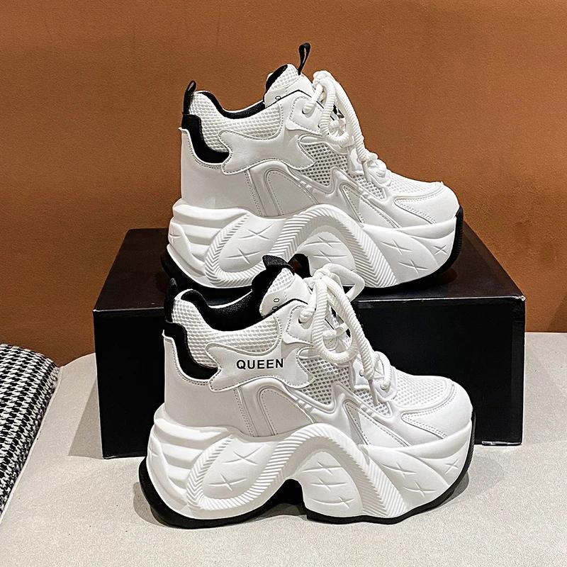 Mode 10CM Damen Chunky Sneakers Neu 2024 Herbst Hohe Plateau Mesh Dad Shoes Damen Casual Trainer Sneakers Dicke Sohle Vulkanisierte Schuhe