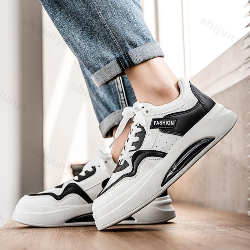 Fashion Men's White Sneakers Spring Autumn Fashion Height Increase Outdoor Non Slip Casual Shoes Breathable Cross Tied Comfortable Flats
