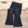 Women's High-Waisted Brushed Washed Plaid Wide-Leg Denim Jeans