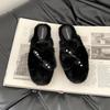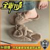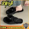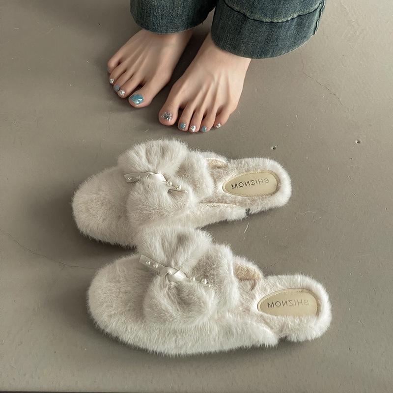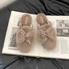 Mode vielseitige Schleife Perle Wolle Hausschuhe weiblich 2025 Herbst und Winter neu Fee bequem Außentasche Kopfhausschuhe