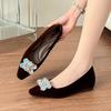Französische elegante flache Schuhe mit innerer Höhenerhöhung Herbst Strass Damenschuhe kleiner eckiger Kopf Temperament vielseitig schwarz Arbeitsschuhe Damen
