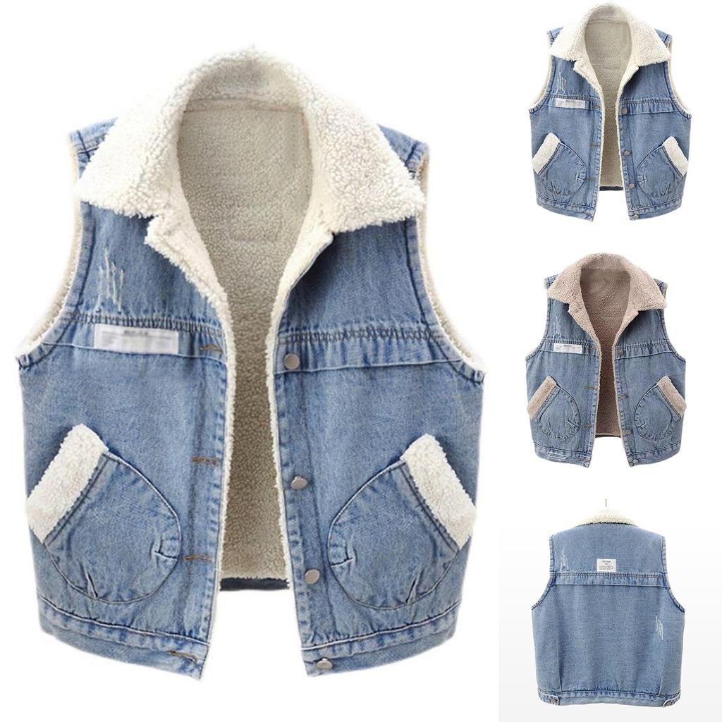 Damen Plüschweste mit ärmelloser Lammwolle und verdicktem Stoff Denimweste