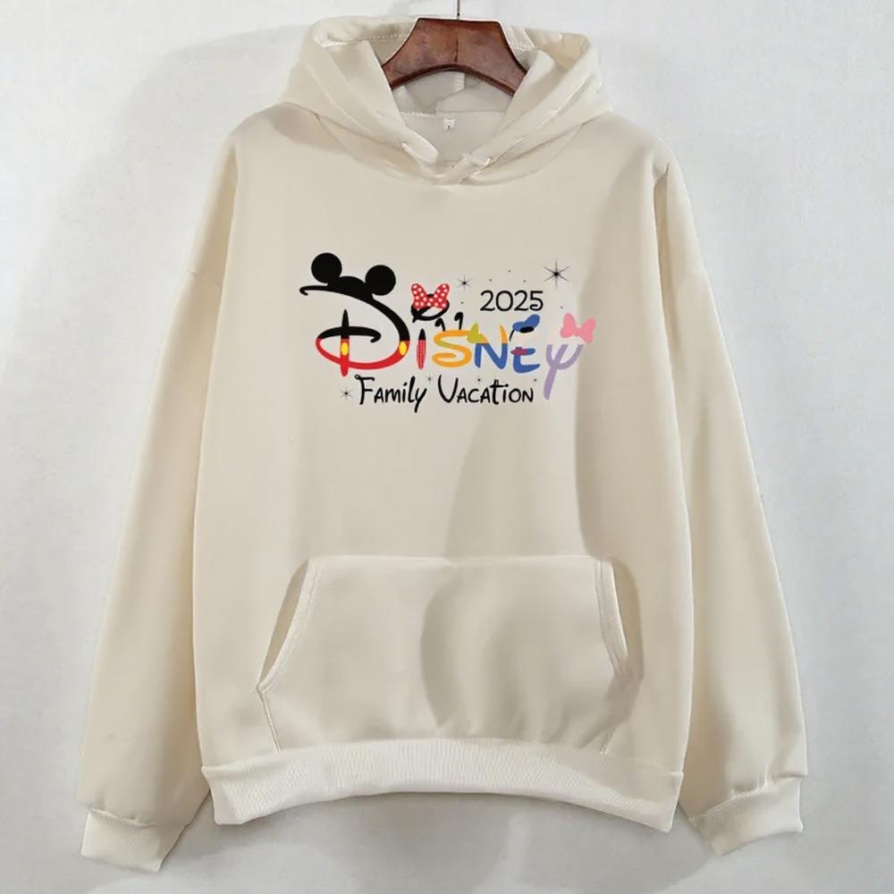 Disney Parent-Child Wear Fun 2025 Disneyland Travel Pattern Multi-Color Hoodie Women's Kawaii Pullover Casual Couple Sweatshirt