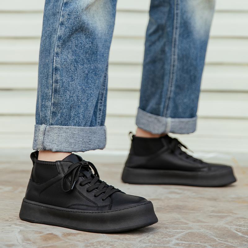 Winter Vintage Black Man Sneakers Leather Men's Skateboard Shoes Comfort Lace-up Men Skate Sneakers Thick Sole Casual Board Shoe