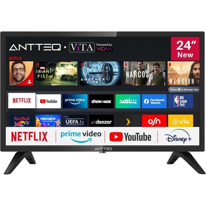 Smart TV 24 Zoll - ANTTEQ - AV24H3 - WiFi - Triple-Tuner DVB-T2/S2/C - DLED 1080p