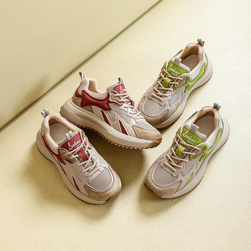 2025 Sommer neue dicksohlige farblich passende Dad-Schuhe Nische Leder Sportschuhe atmungsaktiv bequem vielseitig lässig Damenschuhe