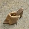 Neue Produkte im Frühherbst~ Temperamentvolle spitze Pantoletten mit offenem Zeh und flauschigem Besatz Damen 2025 neue französische lässige Mode Keilpantoletten