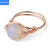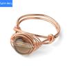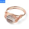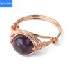 Mit Draht umwickelter runder natürlicher Kristallring, Amethyst-Rosenquarz-Reiki-Heilstein