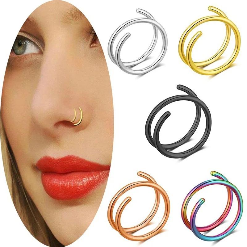 Mode Accessoires Edelstahl Einzeln Gepierctes Spiral Nasenring Einfacher Ohrring Lippe Geschichtet Doppelring Nasenring Hoop Geschenke