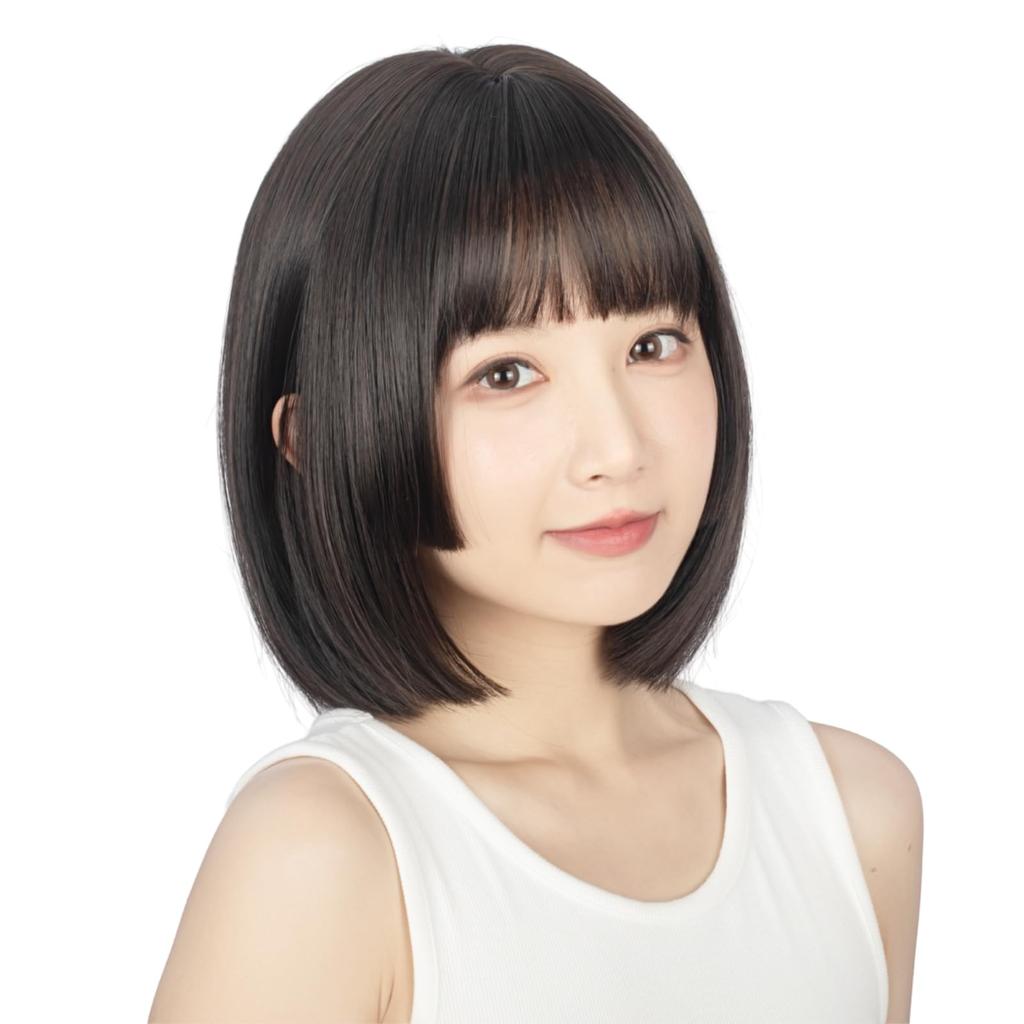 Hello Bella Wig, Bob, Black Hair, Hime Cut, Black Wig, Short Bob, Women's, Full Wig, Cosplay, Natural Wig (Black, Women's, Hime Bob)