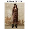 UR 2024 Spring Elegant Metal Buckle Waist Midi Dress