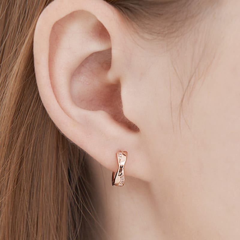 CRANNE 14K GF Cross Ribbon One-Touch Ring Earrings C24EGF198