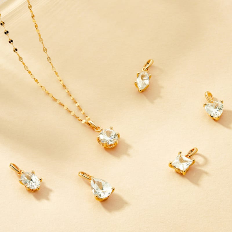 Prestige.J Solitaire Schleier Anhänger(18k Halskette+14k Anhänger 2-teilig)
