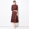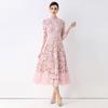 Frühling Herbst Damen Vintage Langarm Aushöhlen Spitze Lang Midi Partykleider