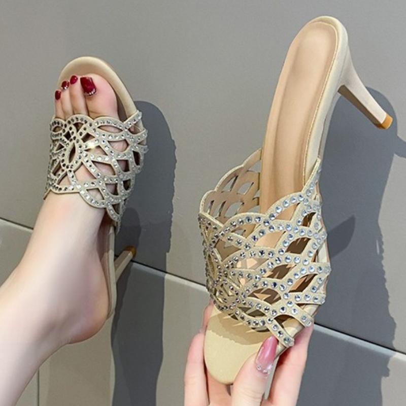 Damen High Heels 2025 Sommer Mode Lässig Offene Zehen Damen Pantoletten Strass Hohl Designer Party High Heels Sandalen
