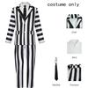 Beetlejuicee Cosplay Kostüm Schwarz-weiß gestreifter Anzug Halloween Karneval Outfits Übergröße Käfer Kostüm Gothic Anzug