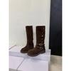 Falten zwei tragen hohe Stiefel Kinder Herbst dicker Absatz Retro absolut Kind vielseitige Schnalle mit runder Spitze Westernstiefel Ritterstiefel