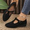 Außenhandel Übergröße Einzelne Schuhe Damen Neu Herbst Europäischer und Amerikanischer Stil Spitze Zehenpartie Flacher Ausschnitt Schnalle Keilabsatz Doudou-Schuhe