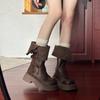 Hohe Stiefel mit flachem Absatz, Kniestiefel im britischen Stil, Ritterstiefel, dick aber klein, Herbst- und Winterstiefel 2025, neu für Damen, erhöht, retro