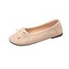 Macaronfarbene Ballerinas mit sanften, weichen Sohlen, flachem Ausschnitt, flachem Boden, Schleife, matter runder Zehenpartie, Damen-Ein-Fuß-Schuhe